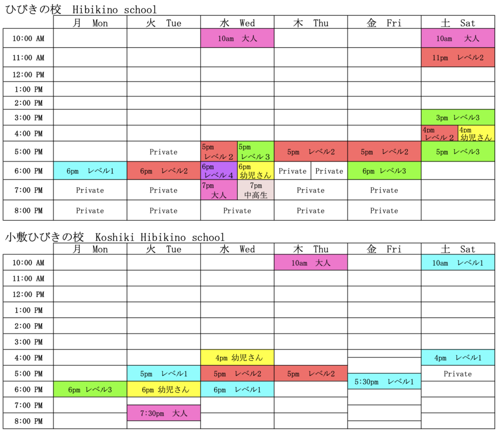 各教室のクラスレベルの詳細は、スクロールダウンするとご覧いただけます。