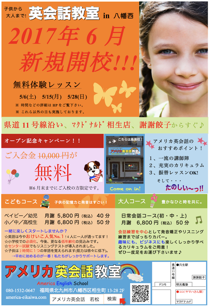 さて、今日はアメリカ英会話教室の八幡西校を初公開〜